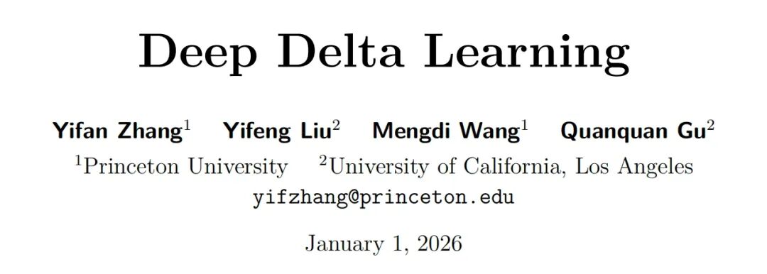 这篇来自普林斯顿和UCLA新研究,提出了一个全新架构:Deep Delta Learning(DDL)。