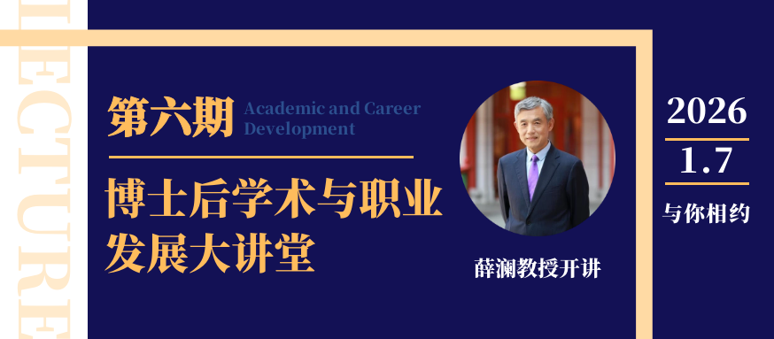 1月7日,清华大学文科资深教授、清华大学苏世民书院院长薛澜将做客第六期清华大学博士后学术与职业发展大讲堂,与博士后畅谈学术规划与职业发展。本期大讲堂由清华大学人事处、博士后联谊会主办,公共管理学院博士后联谊会承办。