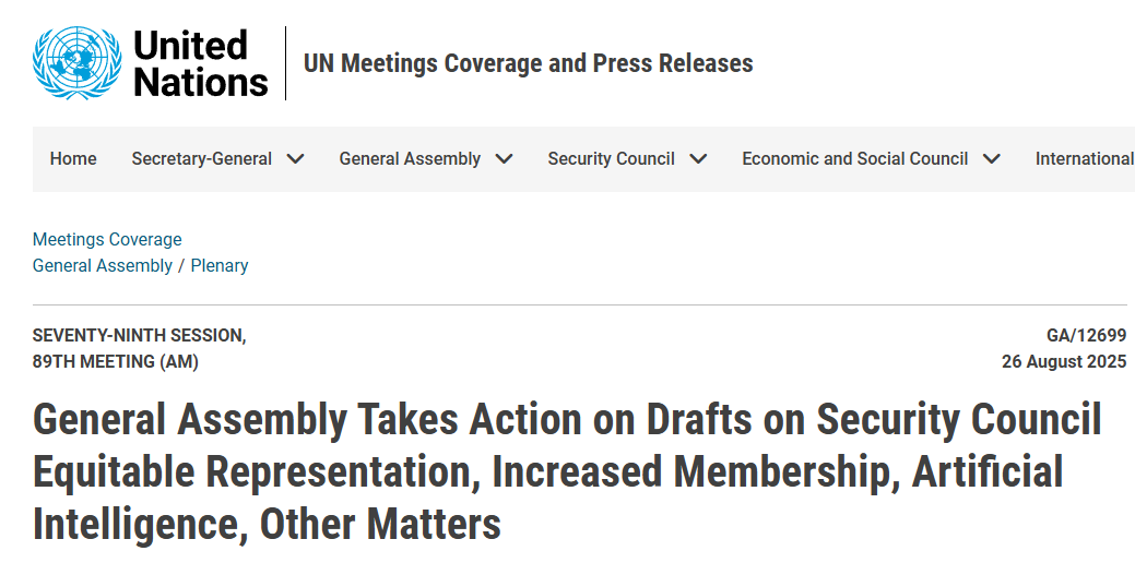 2025年9月26日,联合国总部举行AI治理高级别大会会议,标志着所有193个成员国首次在国际AI治理发展中拥有发言权。会议汇集了来自世界各地的外交官、科学家、科技界成员、私营部门和民间社会。2024年联合国报告发现,118个国家不是近年来创建的任何重要"国际"AI治理倡议的缔约方,只有7个发达国家是所有倡议的缔约方。会议旨在解决这种代表性缺失,启动更具包容性的国际治理形式,重点讨论两个新的里程碑机构即独立国际AI科学小组和全球AI治理对话。秘书长古特雷斯在会议上发表讲话,启动了全球AI治理对话,强调联合国作为应对这一变革性技术的全球主要场所的作用。他指出:"问题不再是AI是否会改变我们的世界——它已经在改变。问题是我们是否会共同治理这一转变——还是让它来治理我们。"全球对话的目标明确:帮助建立安全、可靠和值得信赖的AI系统,以国际法、人权和有效监督为基础;促进治理体系之间的互操作性,协调规则、减少障碍并促进经济合作;鼓励开放创新,包括开源工具和所有人都可以访问的共享资源。