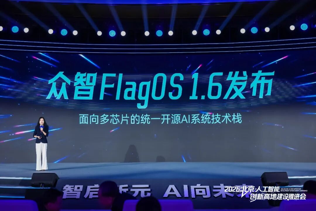 2026年1月5日,“2026北京人工智能创新高地建设推进会”在中关村国际创新中心举行。会上,北京智源人工智能研究院正式发布面向多种AI芯片的系统软件栈 —— 众智 FlagOS 1.6,并同步启动生态建设系列行动。直面硬件生态割裂、开发效率不足和应用落地难等行业痛点,众智FlagOS通过进一步技术创新,加快生态使能、深化硬件架构感知、加速AI赋能研发,为自主算力生态的规模化成熟与产业化落地夯实基础。