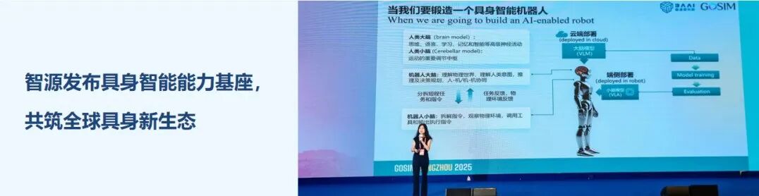 本次推进会上,智源研究院以RoboBrain2.5为案例,展现了FlagOS作为国产软件栈,如何整合国产芯片、推进国产具身大脑基础模型RoboBrain2.5的研发。RoboBrain2.5 在全面继承2.0版本通用感知、空间推理和时序建模三大核心能力的基础上,通过融合更大规模、更高质量的训练数据集,于3D空间理解和时序价值预测两大维度实现了能力跃升。