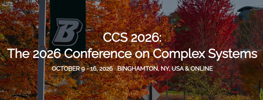 CCS 2026 复杂系统会议以“应对世界变化的复杂系统”为核心主题,聚焦复杂系统的理论基础、非线性动力学与混沌、复杂网络结构与动力学、数据驱动方法等十二大前沿方向,涵盖自然科学、社会科学、工程技术、人文艺术等多领域交叉研究。通过汇聚全球学界同仁,搭建跨学科的学术交流与思想碰撞平台,分享复杂系统在应对全球变化、可持续发展、技术革新等重大议题中的创新成果与实践经验,为理论探索与现实应用的深度融合、跨领域智慧的协同创新提供前沿学术阵地,助力破解复杂世界的发展难题。本届大会定于2026年10月9日至16日在美国纽约州宾厄姆顿市宾汉姆顿大学主校区举办。线上则通过Zoom 平台开放同步直播与互动通道,方便全球学者灵活参与。