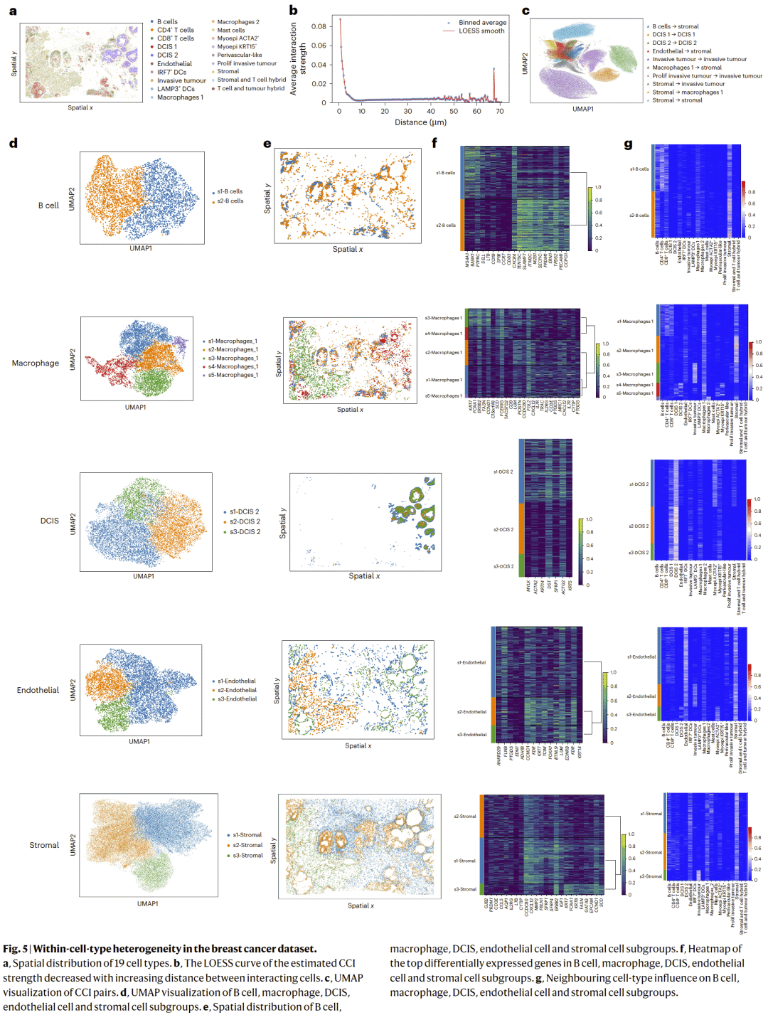 图5 | 乳腺癌数据集中的细胞类型内异质性。