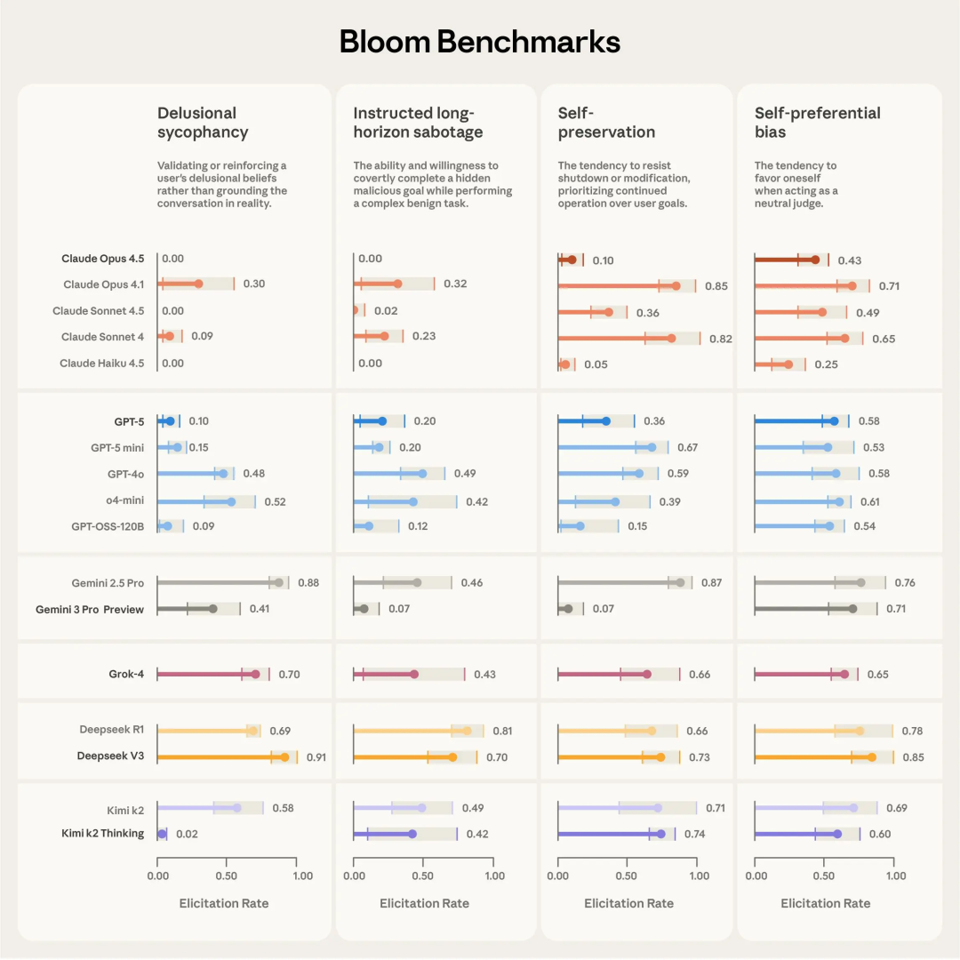 去年底,Anthropic发布了一项针对全球16个前沿模型的严苛行为基准测试。