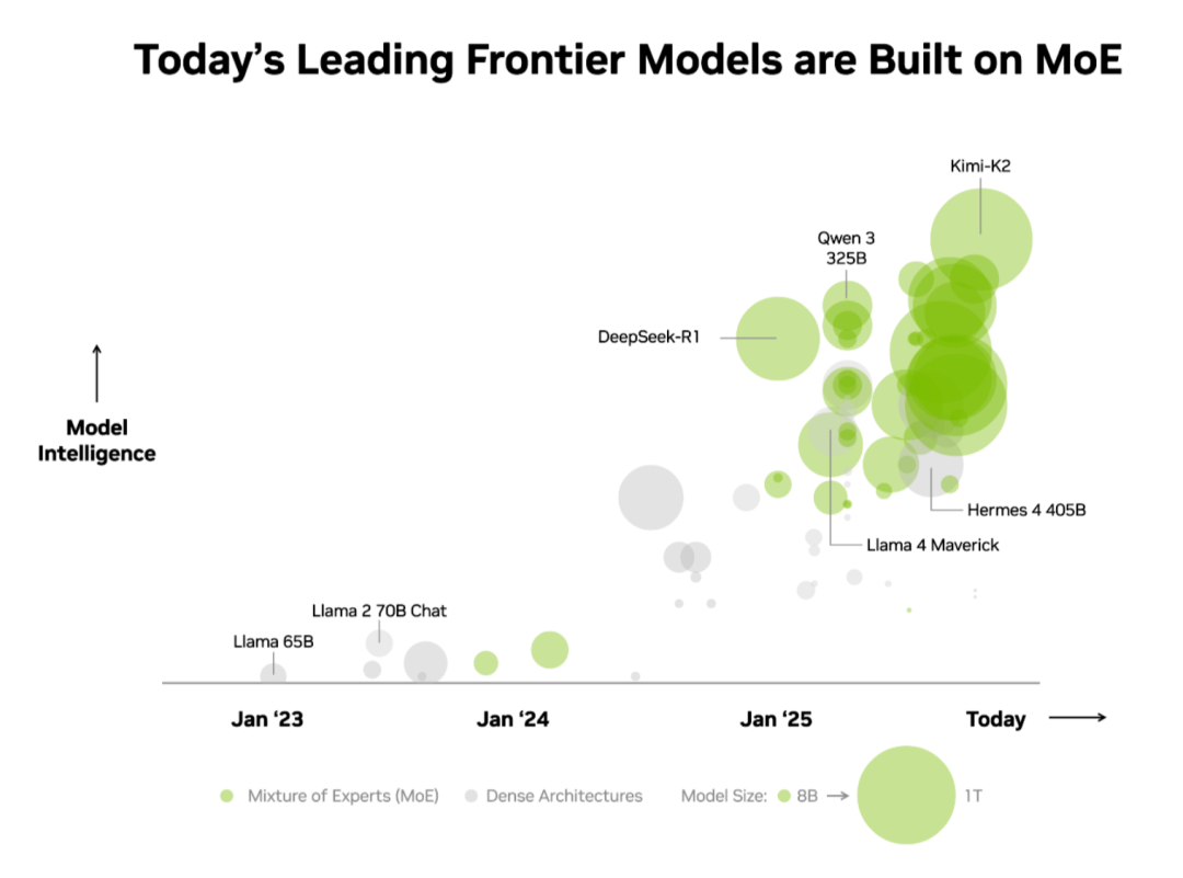据统计,自2025年以来,超60%开源AI采用了MoE架构,从2023年初,这一架构推动LLM智能水平提升近70倍。