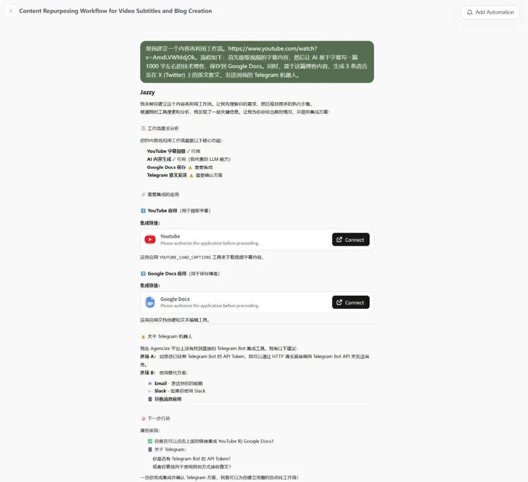 这就是我们和「预先构建工作流」工具的区别:我们的工具像人一样灵活交互,预先构建工作流是反人类的。