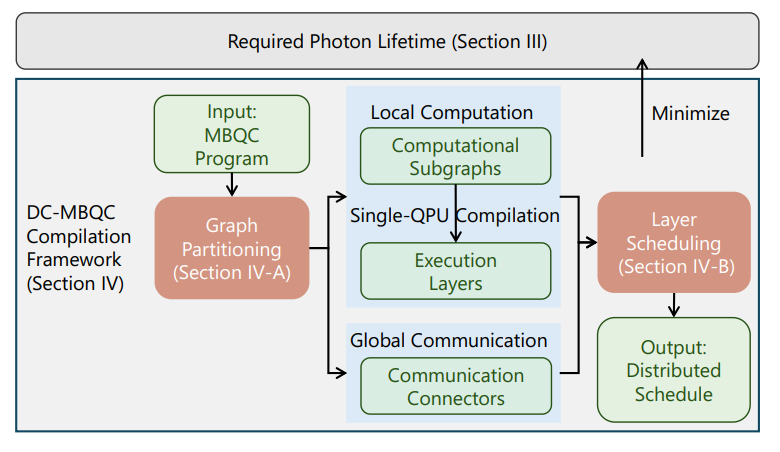 本文提出了 DC-MBQC,这是首个专为 MBQC 设计的分布式编译框架。该框架以最小化“所需光子寿命”为核心优化目标,系统性地解决了上述挑战。
