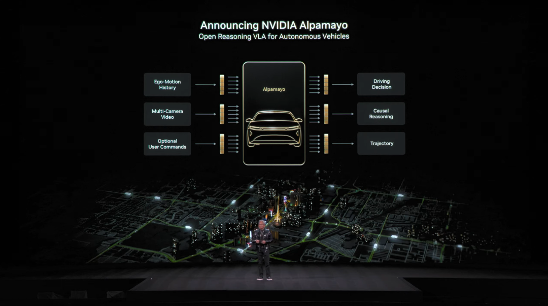 在此基础上,今天,英伟达正式发布了「端到端」自动驾驶AI——AlphaMayo。