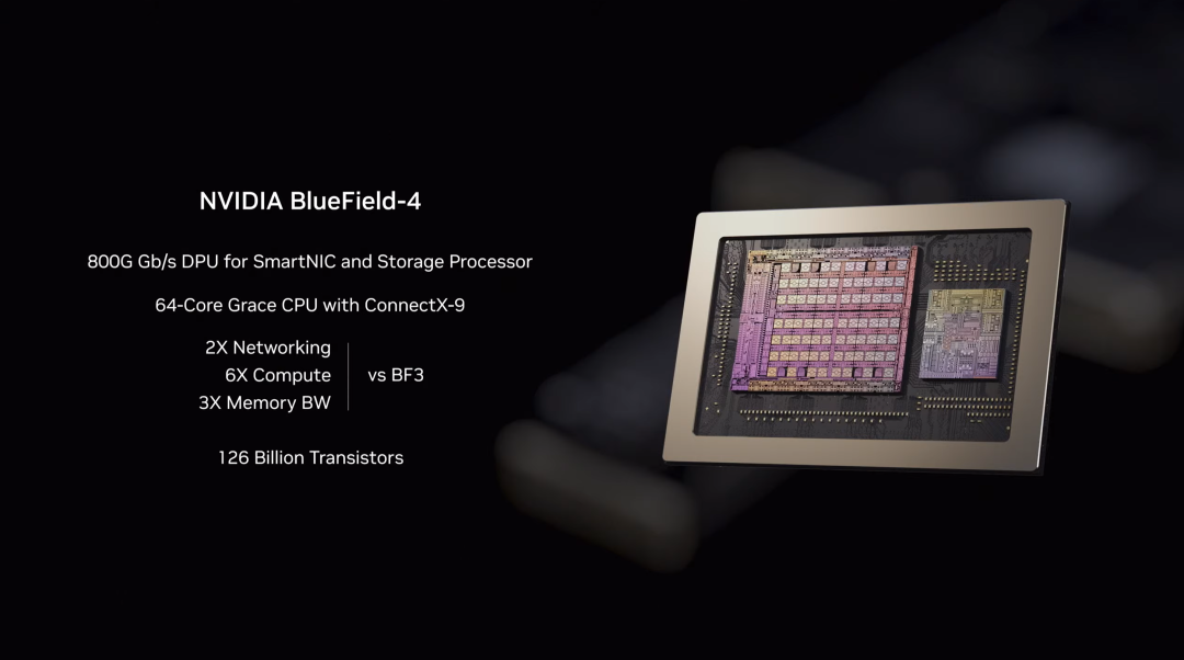 BlueField-4 DPU是一个数据处理单元,它能卸载网络、存储和安全任务,还能管理AI的上下文记忆系统。