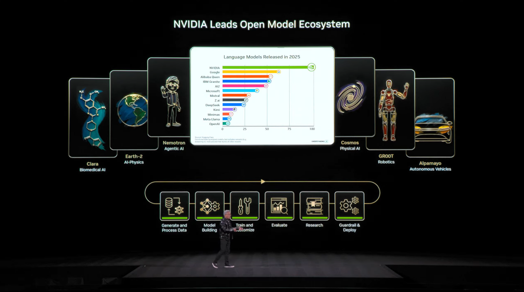 最具代表性的包括多模态Nemotron 3、世界模型Cosmos、机器人模型GR00T、蛋白预测模型OpenFold 3......