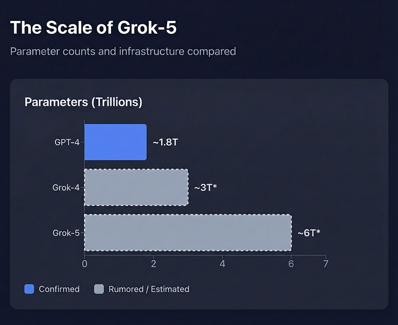 据悉其参数将达到惊人的6万亿左右,不仅远多于GPT-4,而且是Grok-4的两倍以上。