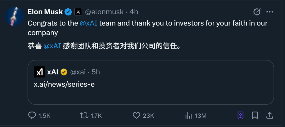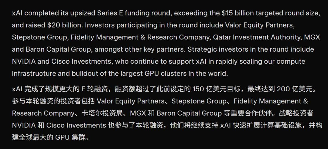 没错,xAI传闻已久的融资终于尘埃落定了——