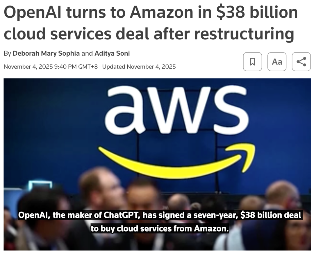 亚马逊不仅拿出了380亿美元的合同,更承诺了OpenAI最渴望的东西:多样性与即时性。