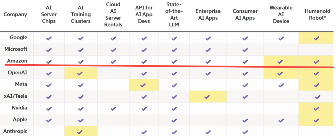 而比较意外的是,亚马逊也不声不响的在AI全栈领域占据一个席位。