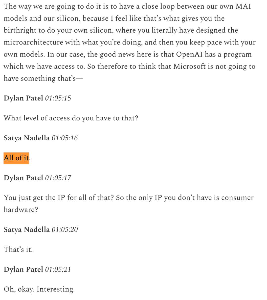 这句话的杀伤力在于它的傲慢。它暗示OpenAI的核心资产——那些模型、算法、数据——实际上都已经属于微软。