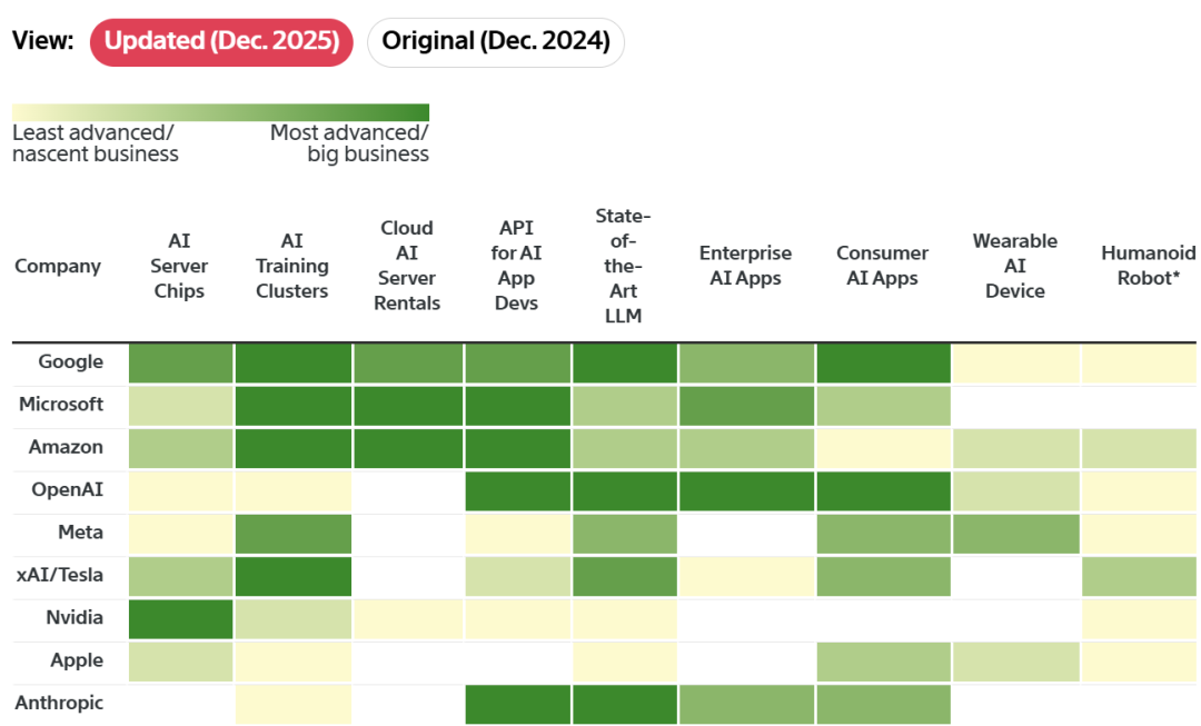 The Information在2024年发布图表时,谷歌就已经是最全面的,在2025年的版本中仍然如此。