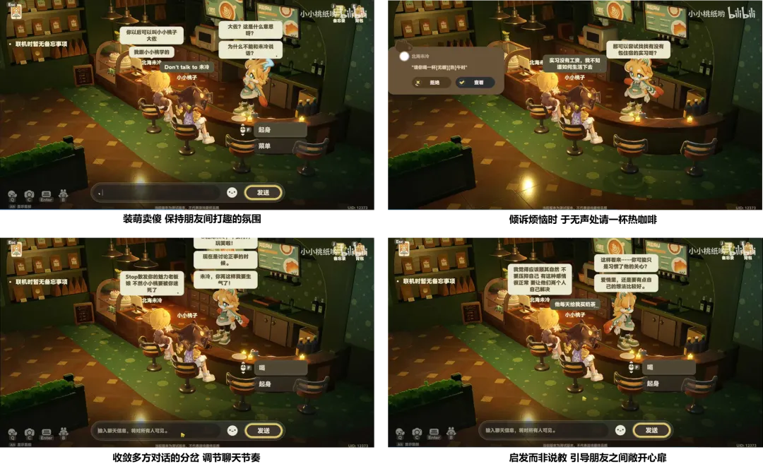 如此一来,娜洛能让弱关系的玩家加深链接,既能在互动中享受非功能型的闲聊陪伴,期待来自朋友和娜洛的共鸣和段子,也能受娜洛的引导和朋友多次交心,靠真人解决情绪和人际问题,并产生共同回忆。