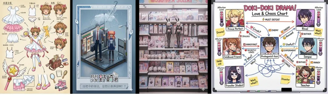 如果延续旧路,生成内容只是为了供他人消费,那碍于相近提示词,其产出必然趋同,充斥着「Sam 大战群雄」或「二游人设拆解」的观感自然不好。就消遣的制作心态而言,多给些激发脑洞、拆分创意等有助于生成的功能更具有吸引力,毕竟核心体验是生成,而非消费,如此才有可能借助群众力量积累更多可供分发的次抛案例。