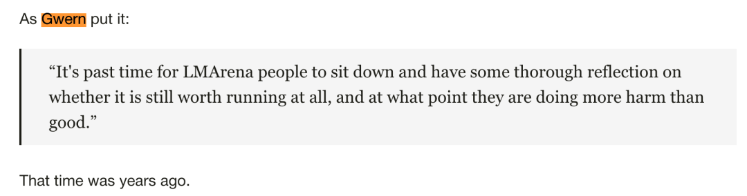 最近,2025年底的一篇名为《LMArena is a cancer on AI》的文章被翻了出来。