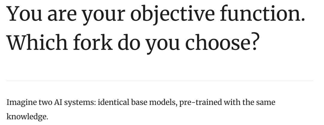 想象两个AI系统:相同的基座模型,用同样的知识预训练。一个为参与度优化;另一个为实用性优化。它们从同一个起点出发。但它们有不同的目标函数。六个月后,它们变成了两个物种。