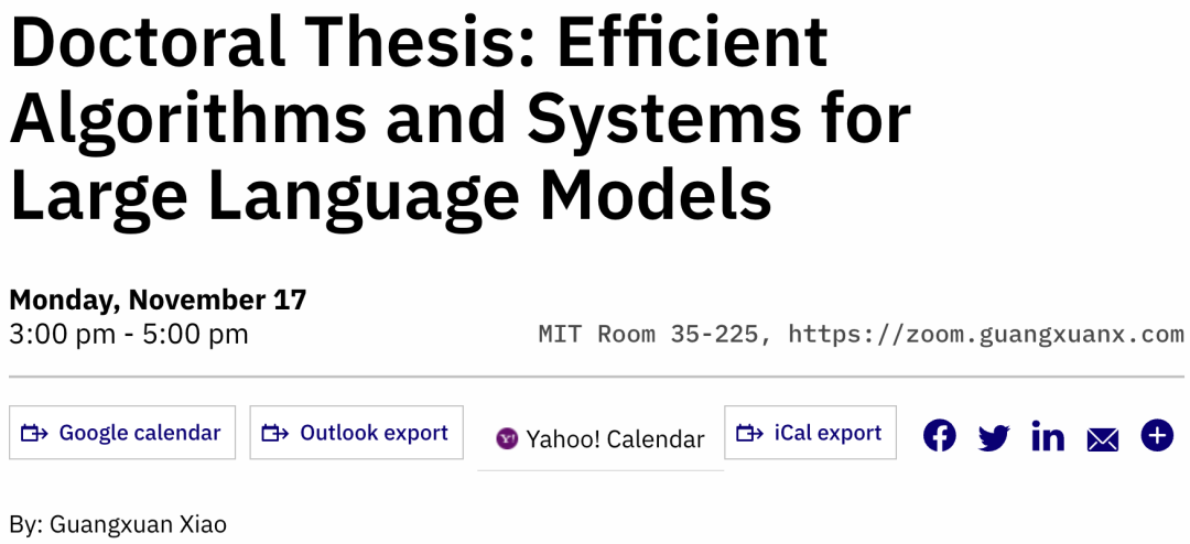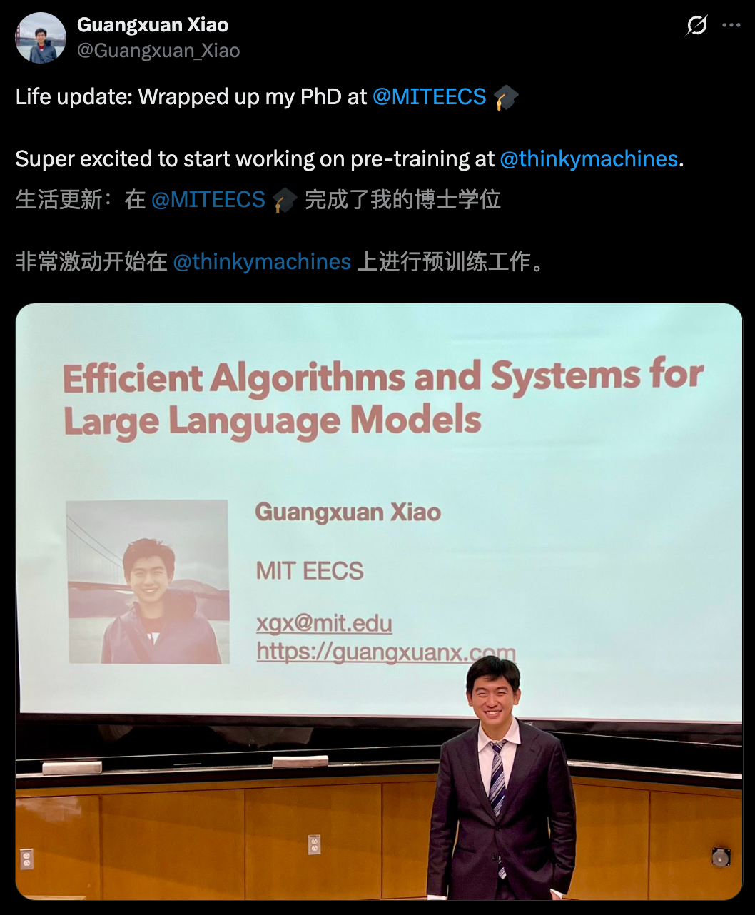 最近,肖光烜(Guangxuan Xiao)在社交媒体官宣,刚刚完成了MIT博士学位。