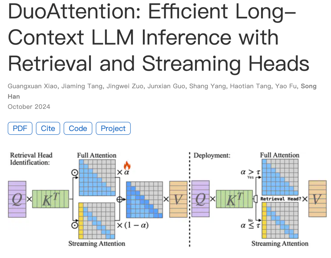 他和团队提出了DuoAttention,结合检索与流式注意力头,实现高效推理。