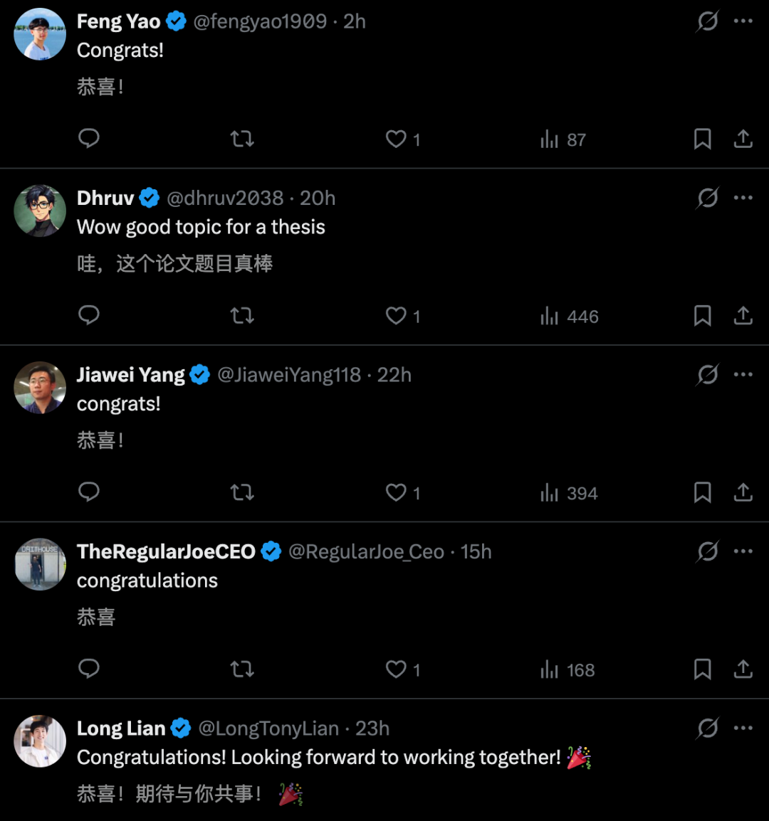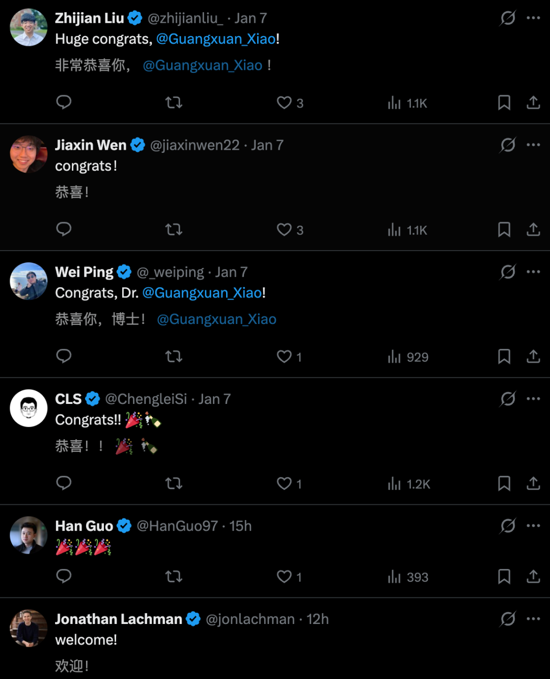 评论区下方,英伟达科学家、xAI研究员、UCSD等一众大佬,为他本人送上了祝贺。