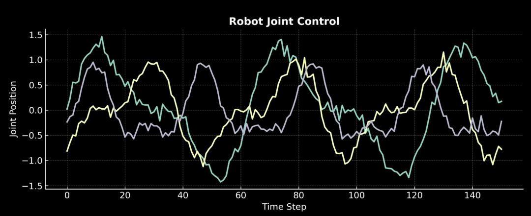 在英伟达,团队让机器人实操去收集数据,机器人关节控制信号,且数值随时间持续变化。