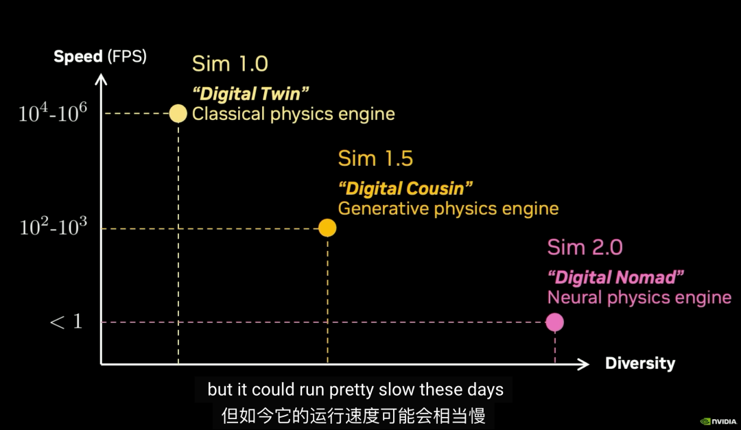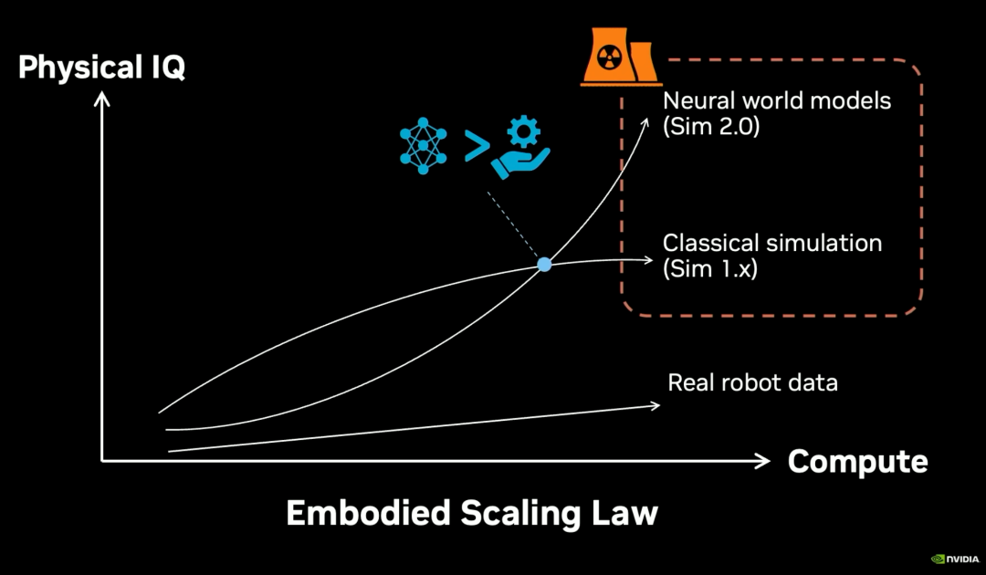 大量3D资产、场景、纹理由模型自动生成,仍结合传统物理引擎,在真实与仿真之间取得工程上「足够接近」。