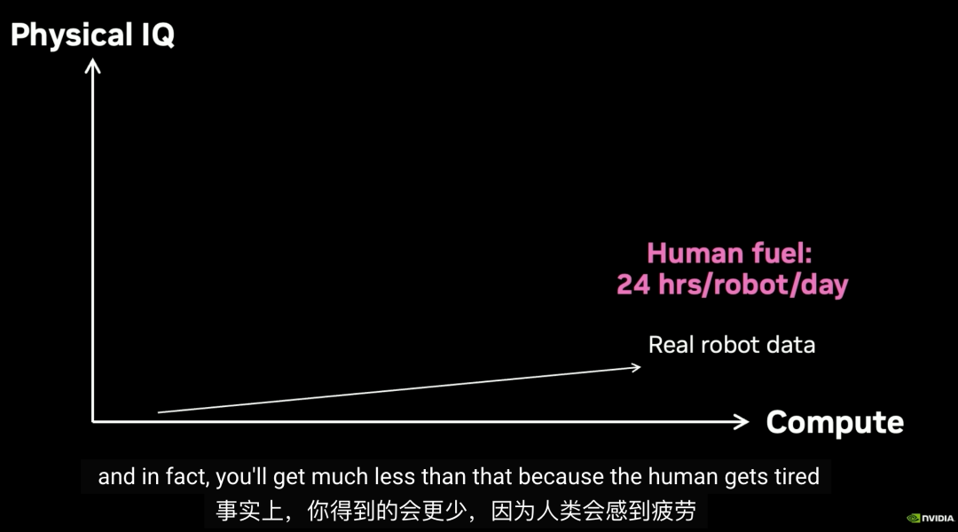 在Jim Fan看来,如果将真实数据收集放在坐标轴中展示,它根本无法实现Scaling Law。