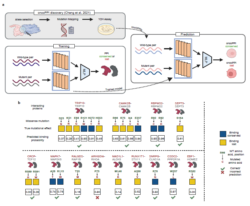 研究人员将 MINT 应用于癌症相关蛋白相互作用突变分析。模型能够有效区分破坏相互作用的致病突变与非致病突变,其预测结果与实验验证高度一致,显示出在疾病机制研究中的潜在应用价值。