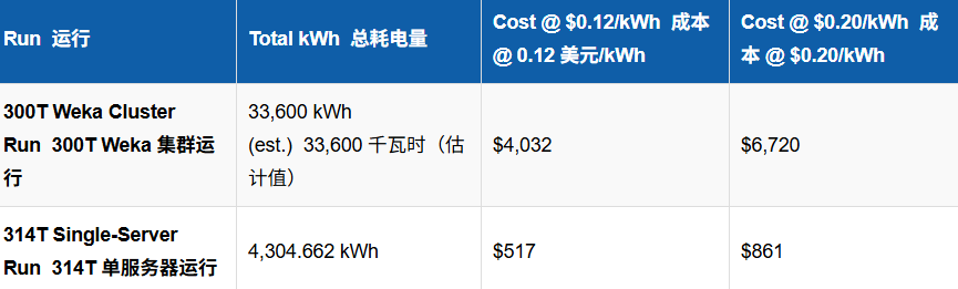 之前Linus Media Group的300万亿的Pi计算记录利用了分布式存储集群和高速网络,这对应了更高的电力和冷却需求。StorageReview选择了不同的路径,专注于存储密度,使用单台服务器同时承担交换存储和输出存储的功能。这在很大程度上减少了电力消耗。