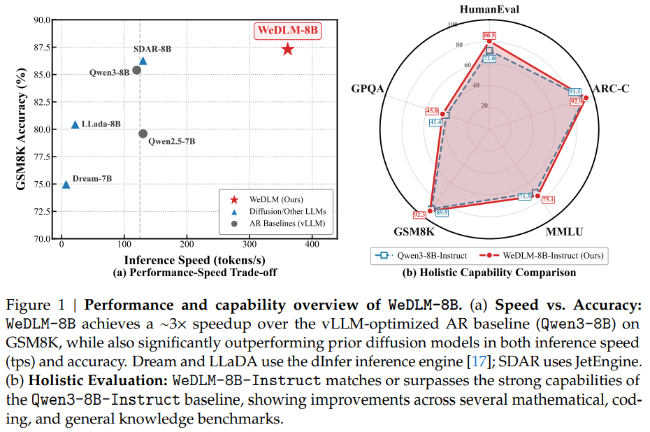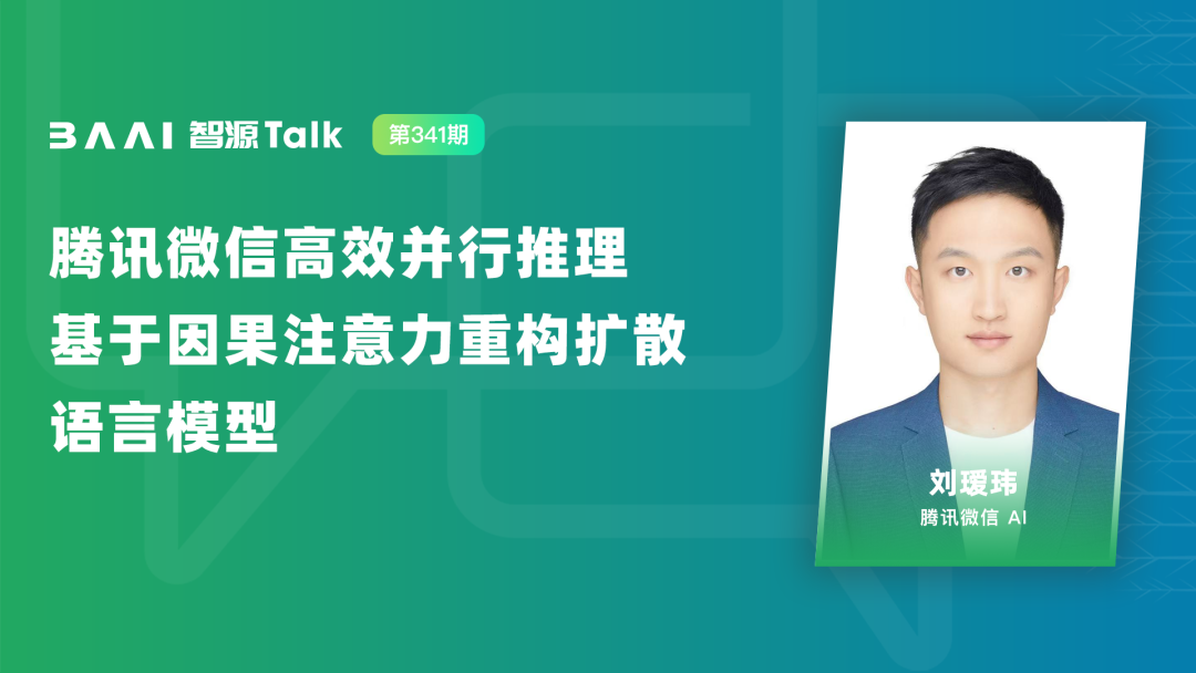 大语言模型(LLM)的自回归生成方式受限于逐词解码,推理效率面临瓶颈。虽然扩散语言模型(DLLM)支持并行生成,但由于依赖双向注意力机制,破坏了 KV Cache 的复用性,导致在实际部署中难以超越经过优化的自回归引擎(如 vLLM)。本次报告将介绍 WeDLM,这是一种基于标准因果注意力重构的扩散解码框架。我们通过拓扑重排机制,在保持严格因果掩码的同时实现了全上下文感知,使得并行生成能够完美兼容 KV Cache。结合流式并行解码策略,WeDLM 能够在保证生成质量的同时,实现超越 vLLM 部署的 AR 模型 的推理速度(在复杂推理任务上加速近 3 -10倍),为大模型的高效部署提供了全新的范式。刘瑷玮博士现任腾讯微信 AI(WeChat AI)研究员,主要从事大语言基座模型的研究工作。他于 2025 年 6 月获得清华大学软件学院博士学位,导师是闻立杰副教授;此前于 2020 年本科毕业于南京大学。在学术研究期间,他曾作为访问学者在伊利诺伊大学芝加哥分校(UIC)师从 Philip S. Yu 教授(ACM/IEEE Fellow),以及在香港中文大学(CUHK)师从 Irwin King 教授(ACM/IEEE Fellow)进行研究。
