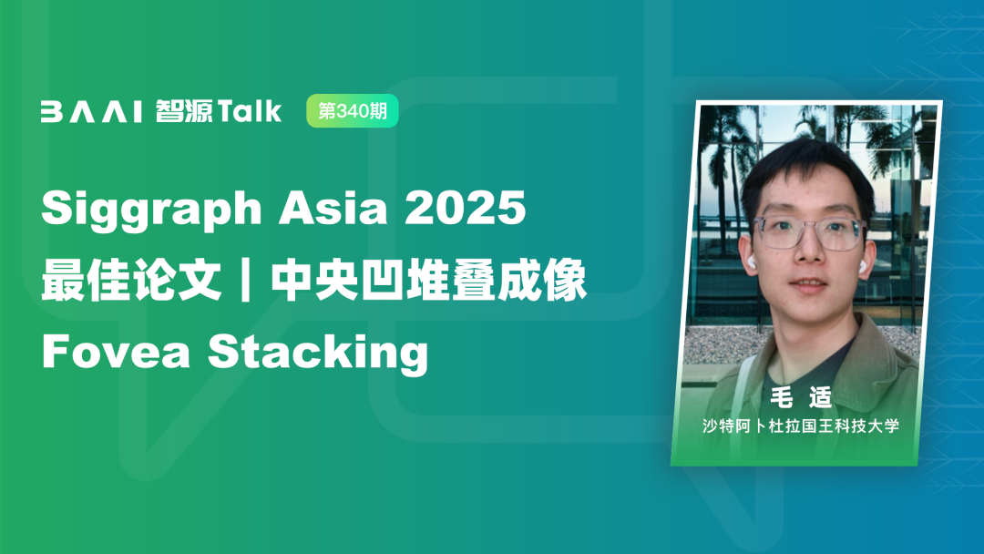 本期报告将由沙特阿卜杜拉国王科技大学毛适进行分享。随着智能手机、VR/AR设备对轻薄化的追求,成像光学系统趋向于小型化。然而,简化的光学系统会导致严重的轴外像差,致使图像模糊,单纯依靠后端算法难以完美修复。本次分享将介绍我们团队的最新研究成果:Fovea Stacking(中央凹堆叠成像)。我们受人类视觉系统启发,模拟视网膜中央凹(Fovea)的局部高清感知机制,提出了一种软硬件协同设计的成像新范式。通过在光路中引入动态可变形相位板(DPP),实现对图像任意注视点的动态局部像差校正。通过“堆叠”多张具有不同注视点的局部高清图像,该技术让极简的单镜片镜头也能获得全视场清晰的高质量影像。这项技术在物体追踪、大景深成像及 VR/AR等前沿场景中具有应用潜力。- 仿生成像新思路:突破传统“全局校正”的思维定式,借鉴人类视网膜成像机制,实现“按需校正”的动态局部高清成像。- 软硬件协同设计:深度结合可变形相位板(DPP)硬件与可微分光学模型,展示如何通过算法补偿极简光学系统的物理限制。项目链接:https://sheldonmao.github.io/projects/FoveaStacking毛适,沙特阿卜杜拉国王科技大学 (KAUST) 计算机科学系在读博士生,师从 Wolfgang Heidrich 教授。曾于清华大学获得硕士学位,本科毕业于华南理工大学。研究方向集中在计算成像、可微分光学以及3D视觉,致力于通过软硬件协同创新突破传统成像系统的物理限制,并更好的重建三维世界。他的相关研究成果发表于SIGGRAPH Asia、IEEE TPAMI、CVMJ 等国际顶级会议与期刊,并凭借第一作者论文荣获 SIGGRAPH Asia 2025 最佳论文奖。扫码报名