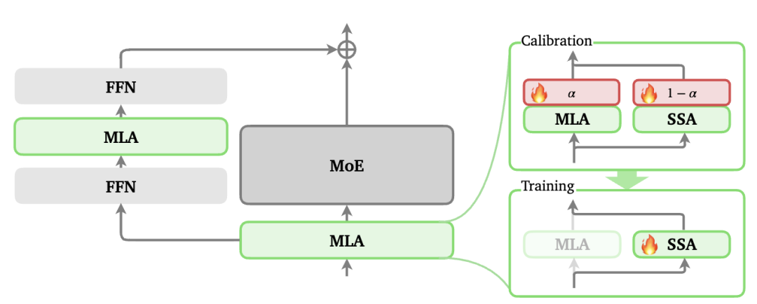 首先,给模型里的多头潜在注意力模块MLA做一个全局“筛查”,找出哪些模块可以被改造。