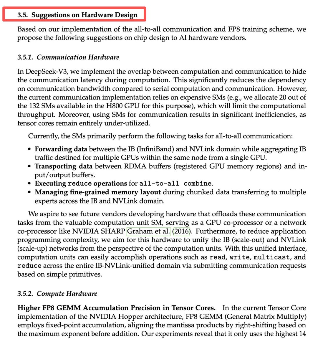 是这样的,DeepSeek之前发V3技术报告时有个板块叫「硬件设计建议」,里面有提到模型是按哪种芯片标准设计的。