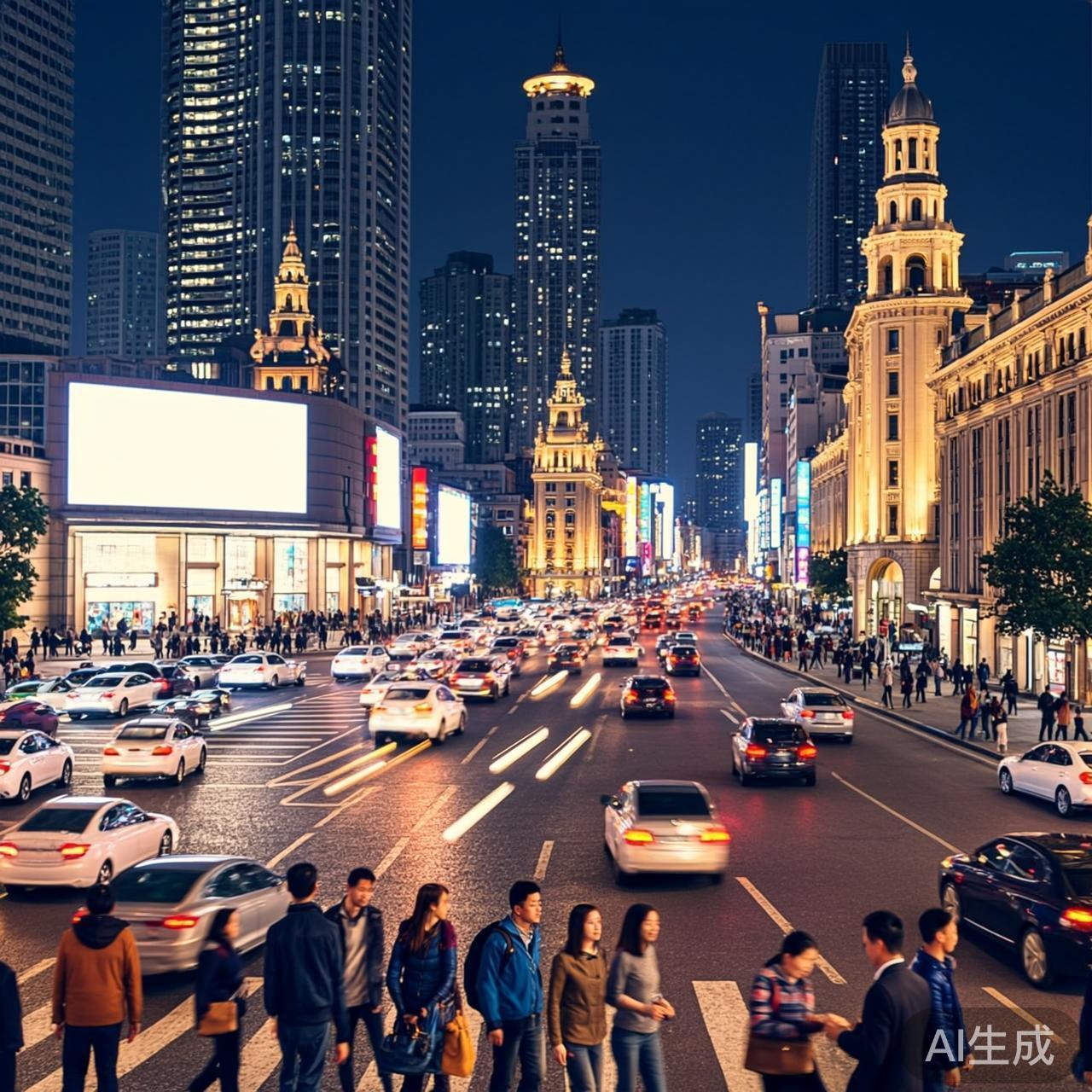 Prompt: 生成一个上海晚上10点热闹街头的场景