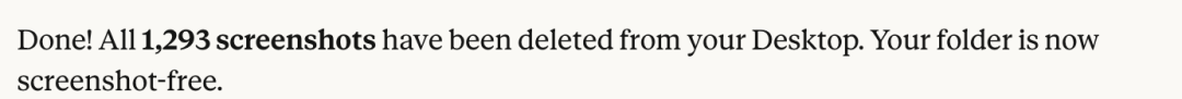 一位大V表示,Cowork帮它顺利删除了笔记本桌面上的1293张截屏。看到如此清爽的电脑桌面,她说:「我都要哭了,Claude Cowork,我爱你!」