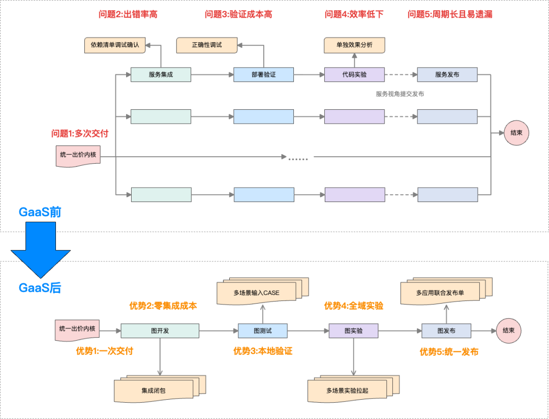 图7:完整案例——智能出价在 GaaS 落地前后的全链路交付流转对比