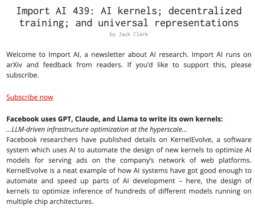 文章链接:https://jack-clark.net/2026/01/05/import-ai-439-ai-kernels-decentralized-training-and-universal-representations/