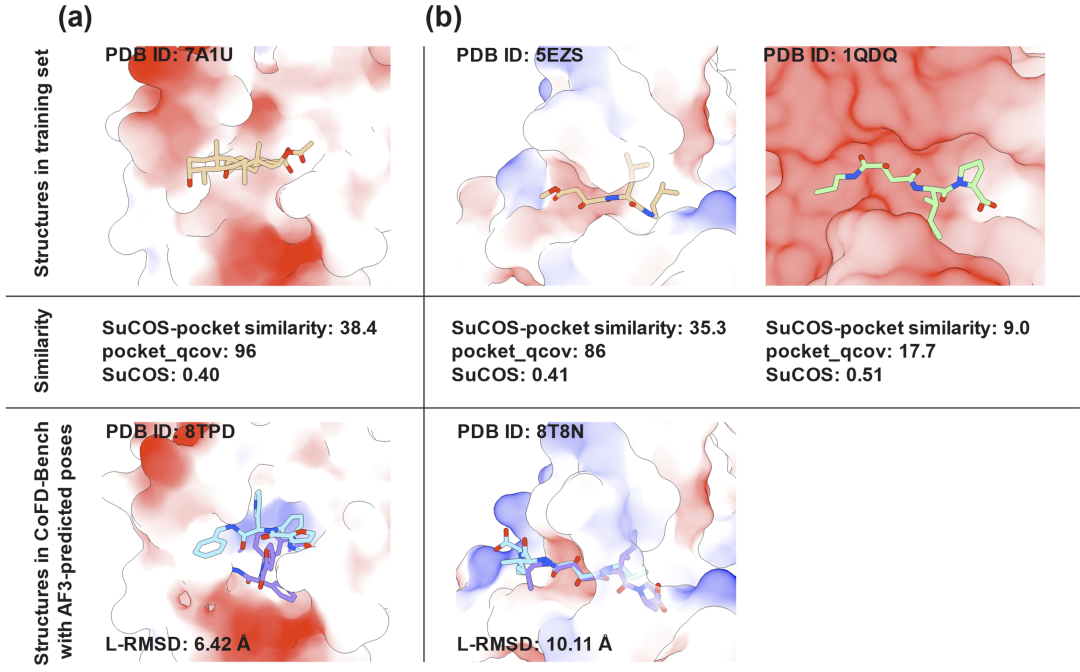 上述的分析表明:当前的共折叠模型在一定程度上仍依赖于对已知训练数据/结构的“记忆”,在面对全新的化学空间时,其真实的物理泛化能力仍有待提高。