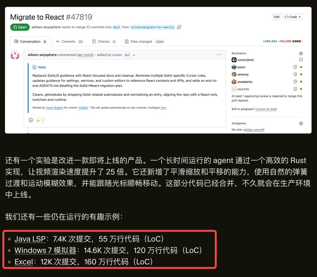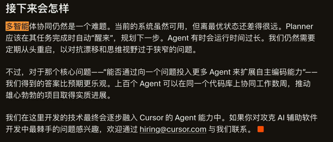 Cursor团队实现了上百个Agent可以在同一个代码库上协同工作数周,几乎没有代码冲突。