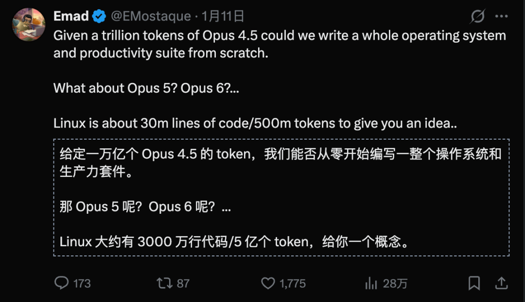 他还有一个想法:用多少token能够重写一套Windows级别的操作系统?成本如何?