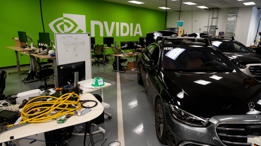 英伟达正在打造汽车科技业务。图为2023年6月5日,公司位于加利福尼亚圣克拉拉汽车维修厂的自动驾驶测试车