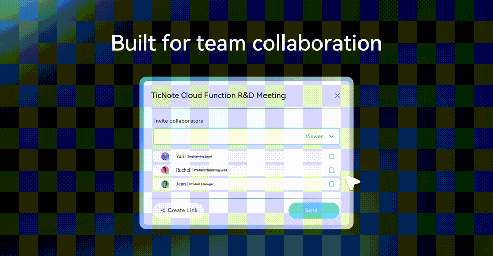 团队成员往往陷入了,整理日常纪要的琐碎,无法专注于核心创意。TicNote Cloud将会改变这一切。