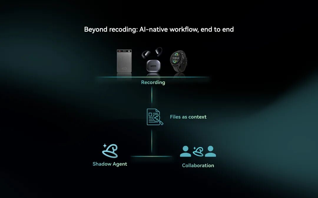 这一次,出门问问发布的,是一个「AI原生软硬全家桶」。这也是这场演讲的主题——Beyond Recording。
