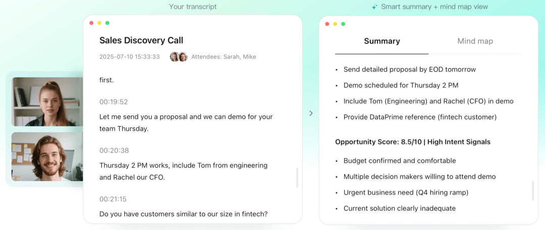 - Shadow AI全流程:记录-分析-洞察,用户专注对话,无需担忧分心记录