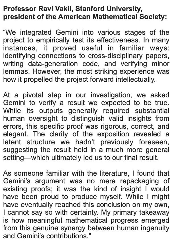 斯坦福大学教授、美国数学会会长Ravi Vakil亲自认证了Gemini提供了关键且独创的洞见,给出的证明「严谨、正确,而且优雅」:
