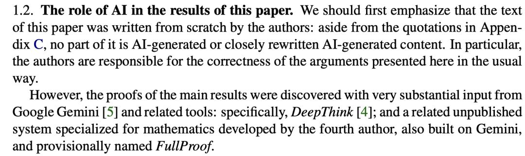 本论文核心成果的证明过程,正是在谷歌Gemini模型及其相关工具的大力推动下得以实现的——具体包括DeepThink系统,以及由第四作者基于Gemini框架专门开发的数学证明系统(暂定名为FullProof)。