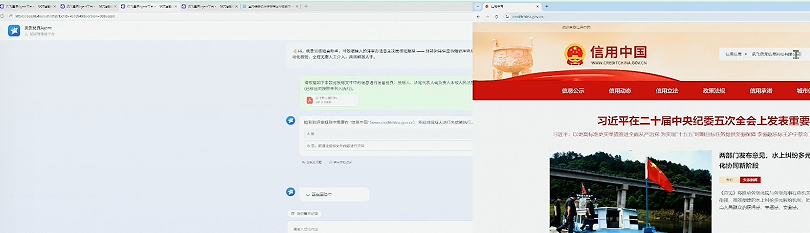 然后Agent就识别出,需要到信用中国去实现验证。